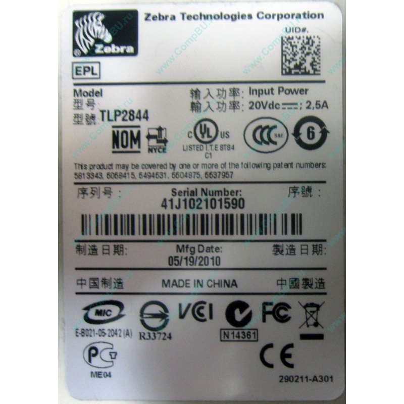 Термопринтер Zebra TLP 2844 (слегка пробита крышка в Новочебоксарске, без БП!) - Новочебоксарск Изображение большего размера