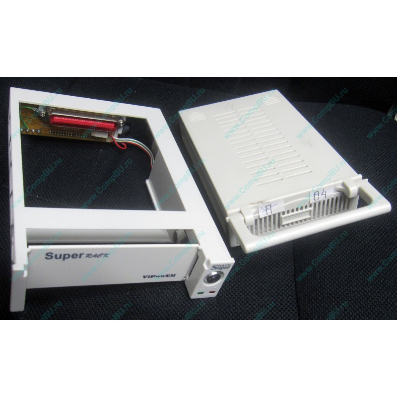 ViPower SuperRACK - контейнер (корпус) для 3.5" жёстких дисков UDMA 33/66/100/133 с интерфейсом IDE. Предназначен для установки в 5.25" отсек компьютерного корпуса. Состоит из двух частей - стационарной (закрепляемой в корпусе компьютера) и съемной (для переноса жесткого диска). Внутри находятся два вентилятора (для охлаждения винчестера, помещенного в контейнер).