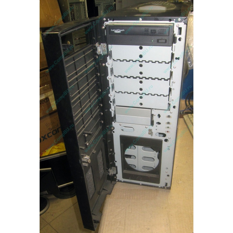 Большой корпус с дверцей. Блок питания 400 W. В бонус DVDRW IDE (установлен в корпус).