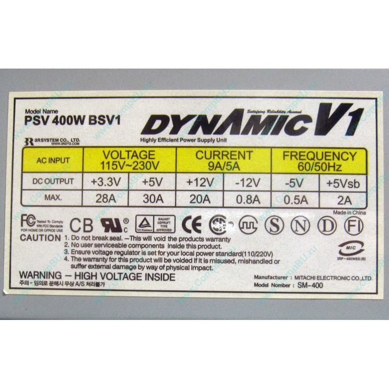 Блок питания: 400W ATX DynamicV1 PSV 400W BSV1 (SM-400)