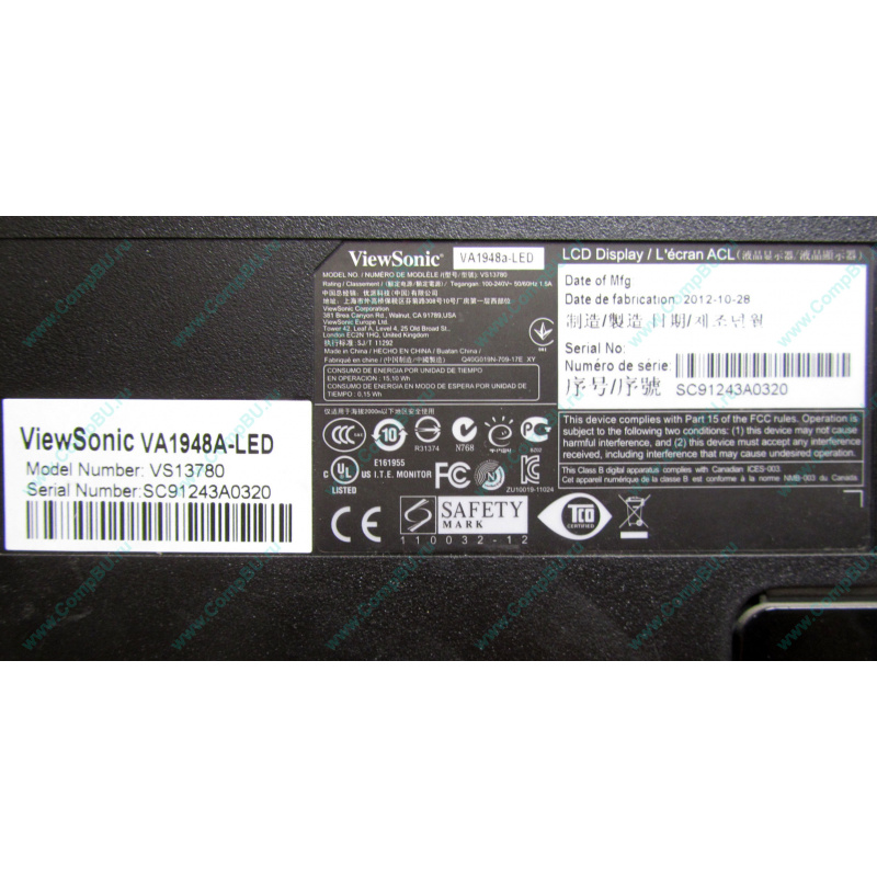 Монитор Б/У 19" TFT ViewSonic VA1948A-LED широкоформатный (1440x900, 16:10). Состояние хорошее.