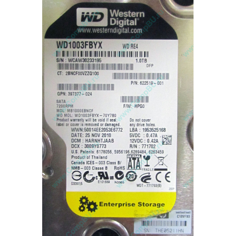 Жесткий диск: 300Gb 15k SAS HP p/n 516810-001 GPN 516832-002 STX-ST3600057SS ST3300657SS 9FL066-035 + 3 штуки 1Tb WD WD1003FBYX RE4 p/n 622519-001 GPN 397377-024 7200rpm
