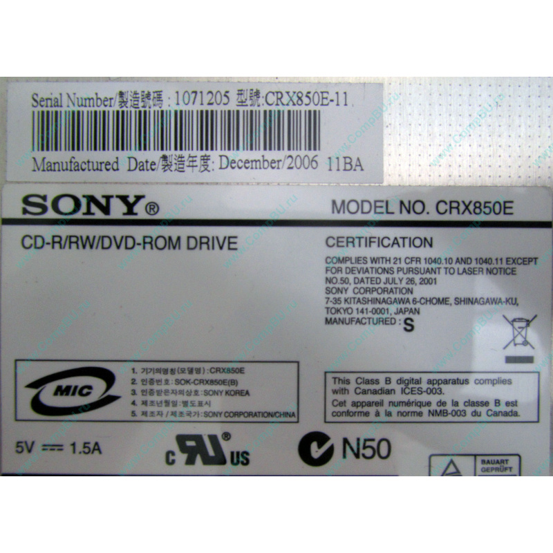 CD-R/RW/DVD-ROM DRIVE SONY CRX850E-11 11BA
